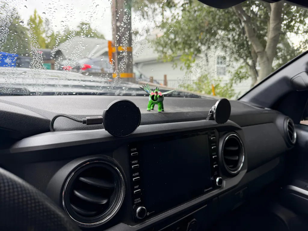Available with a non-charging magnetic head option as shown in the photos and installation video, the optional Course Motorsports Automatic Gripping Wireless Induction Charger Mount or Course Motorsports Magnetic Induction Charger - MagSafe Compatible.